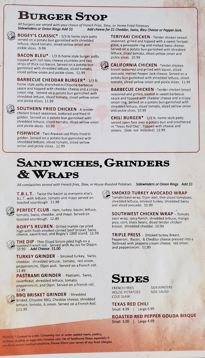 With friendly staff and a vibrant ambiance, Bogey's is sure to become your go-to spot for good eats and a good time!